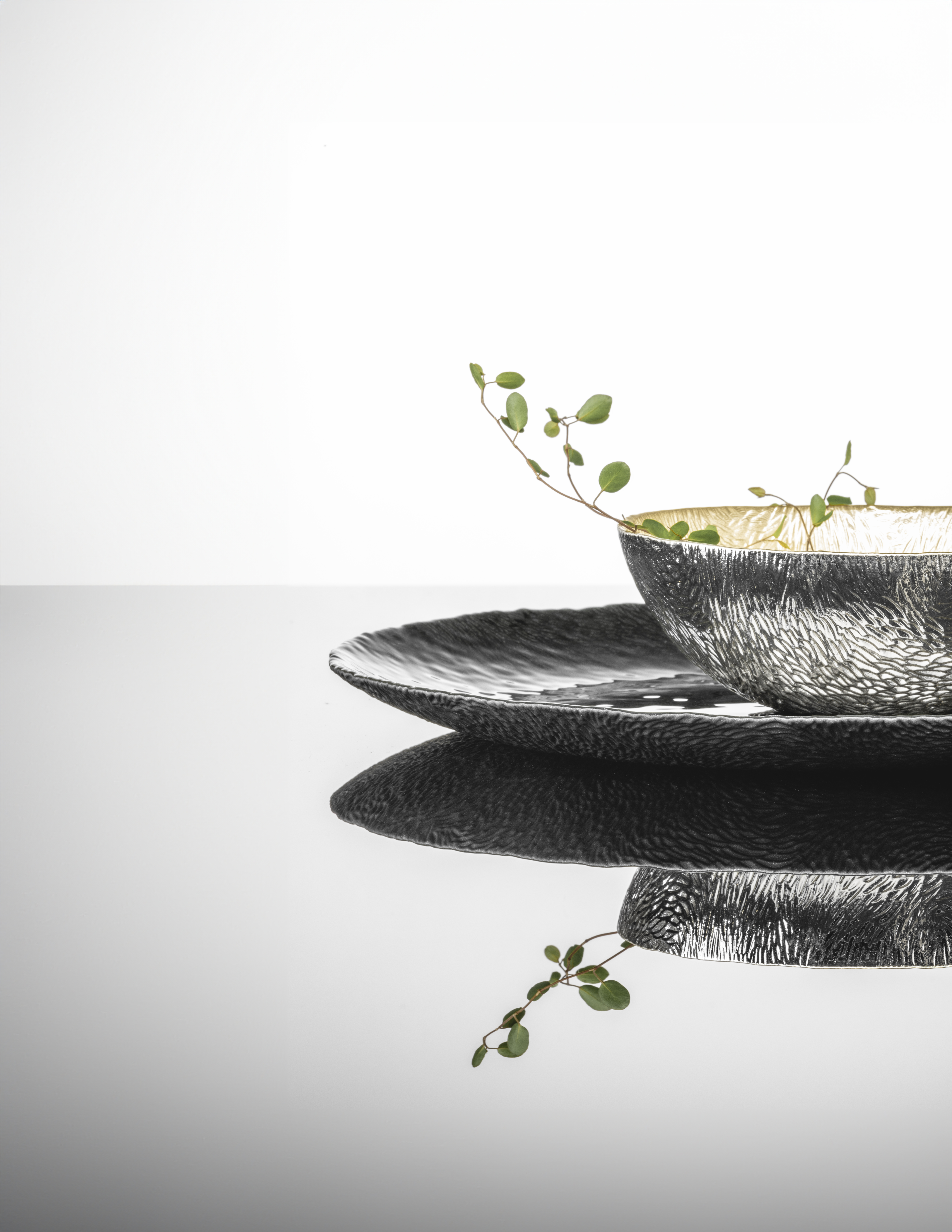 Die EISCH Schalen SEN silver sind ein Highlight für stilvolle Tafelarrangements. Die lebendige Struktur in der Glasoberfläche verleiht den Schalen zusammen mit der schimmernden Champagner-Gold-Innenseite eine noble Eleganz. Die Außenseite ist mit Silber beschichtet, was SEN zu echten Glanzpunkten macht. Vielseitig einsetzbar für Desserts, Dips oder Snacks, eignen sich die Schalen hervorragend für kunstvolle Präsentationen. Der Durchmesser beträgt 150 mm bei einer Höhe von 55 mm.