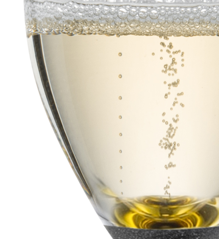 Die raue Oberfläche des Moussierpunkts sorgt dafür, dass sich die im Getränk enthaltene Kohlensäure genau an dieser Stelle bündelt und besser löst. So perlen Schaumweine wie Sekt und Champagner, aber auch spritzige Weißweine oder sogar Bier noch besser und länger auf.