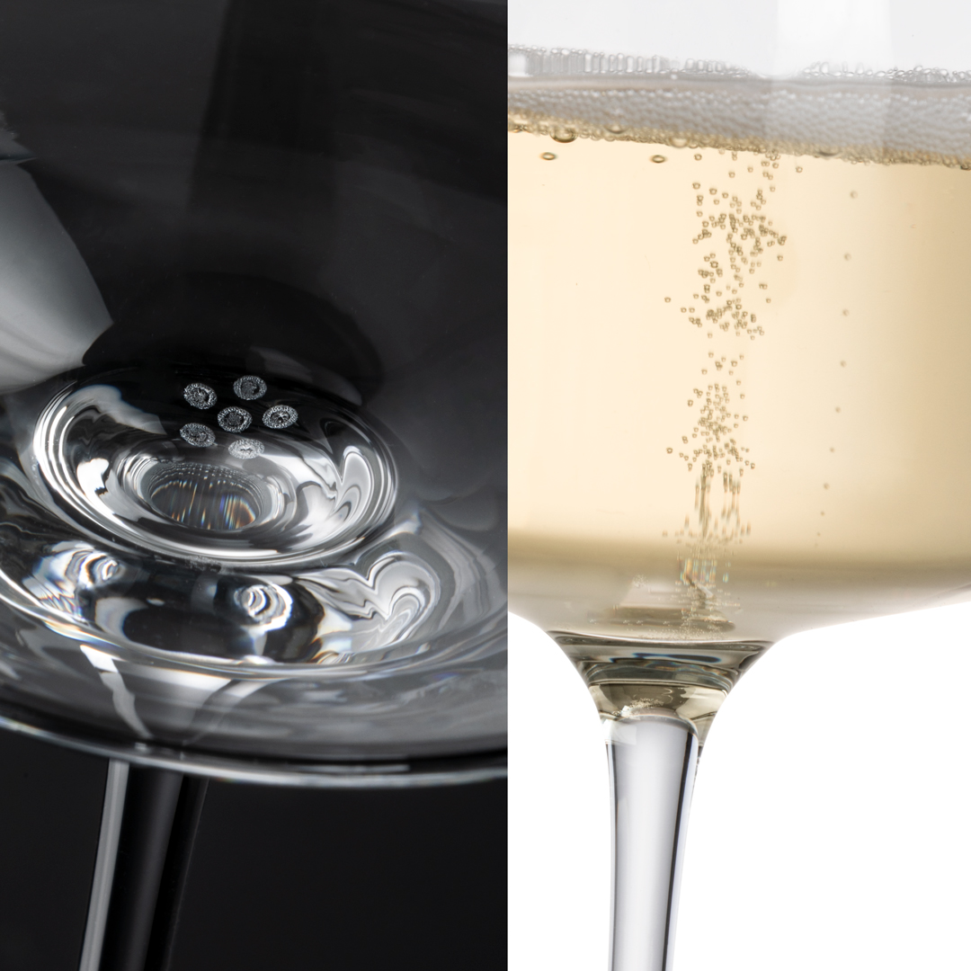 Die raue Oberfläche des Moussierpunkts sorgt dafür, dass sich die im Getränk enthaltene Kohlensäure genau an dieser Stelle bündelt und besser löst. So perlen Schaumweine wie Sekt und Champagner, aber auch spritzige Weißweine oder sogar Bier noch besser und länger auf.