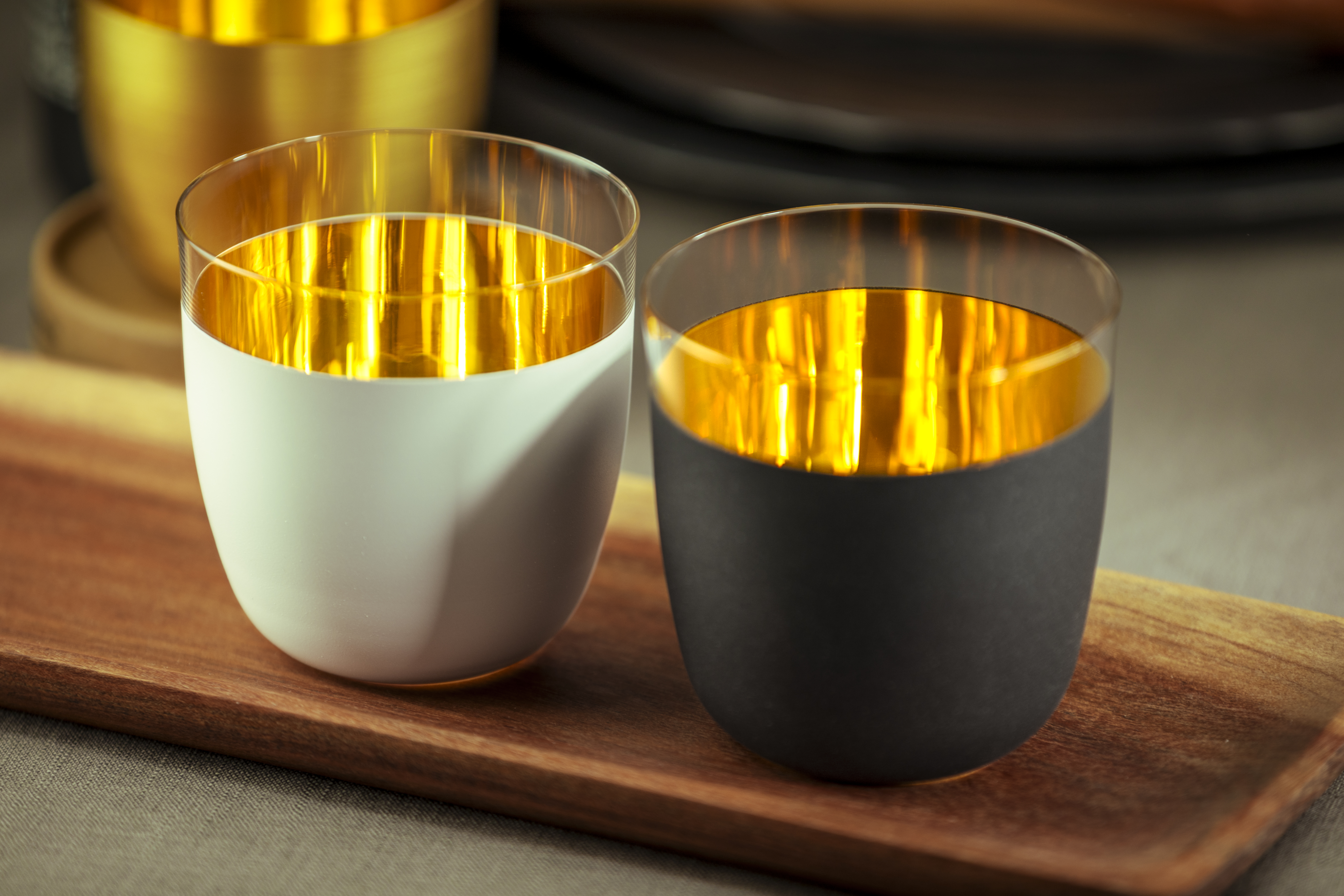 Champagne, cocktails or water merge with the sparkling gold to create a luxurious enjoyment experience.
