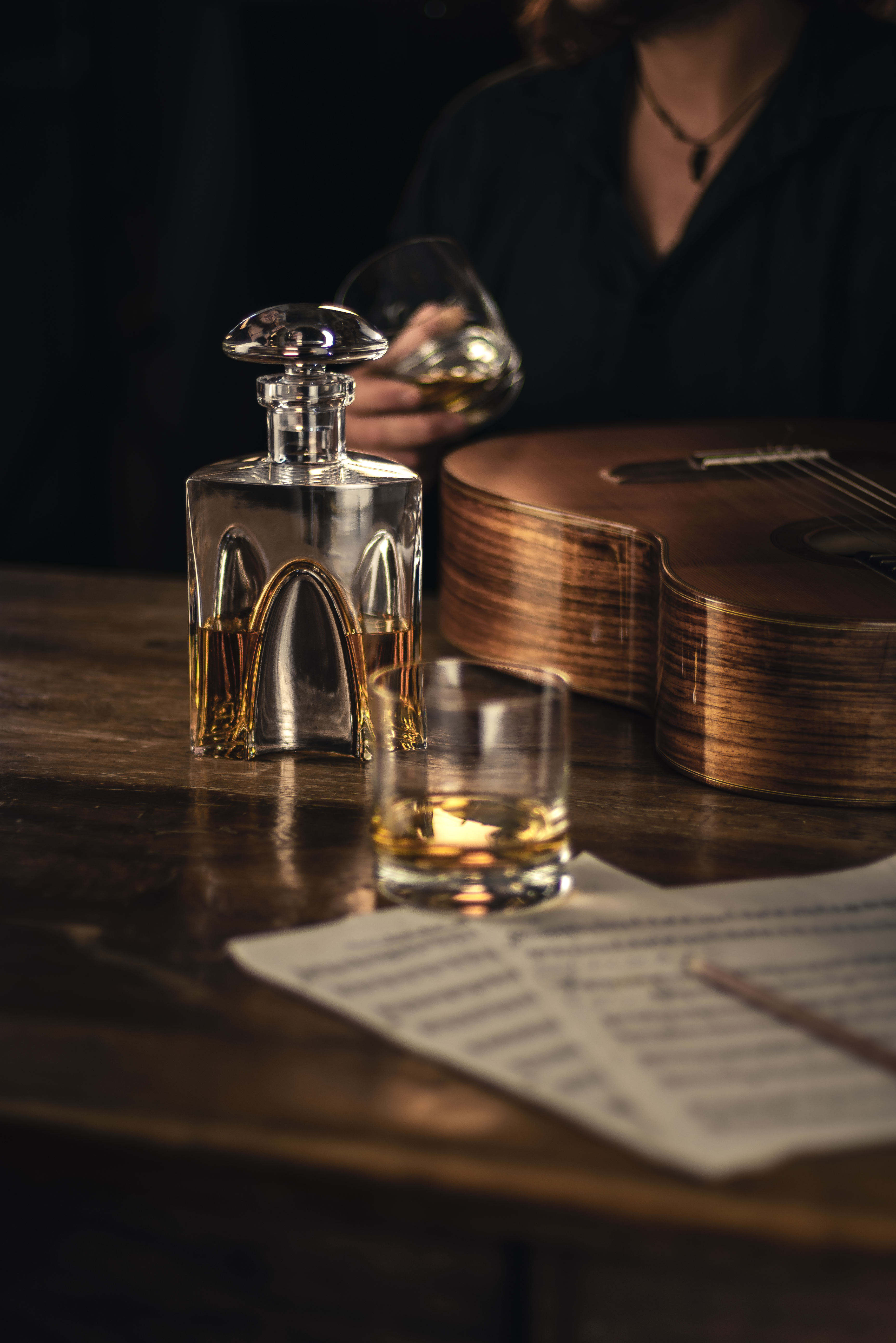 The EISCH GENTLEMAN Gold whisky carafe impresses with its unusual shape and elegant appearance. Hand-blown from brilliant crystal glass, it is finished by hand with 24-carat gold at the EISCH glassworks. A special seal preserves the shine of the precious metal. The hand-cut stopper fits the decanter perfectly and protects the aroma of your whisky. Thanks to the EISCH NO DROP EFFECT, clean, drip-free pouring is guaranteed. With a height of 232 mm and a capacity of 0.75 l, the carafe is perfect for special moments of enjoyment. Packaged in a black gift box, it is an exclusive gift idea for whisky lovers and connoisseurs who appreciate something special.